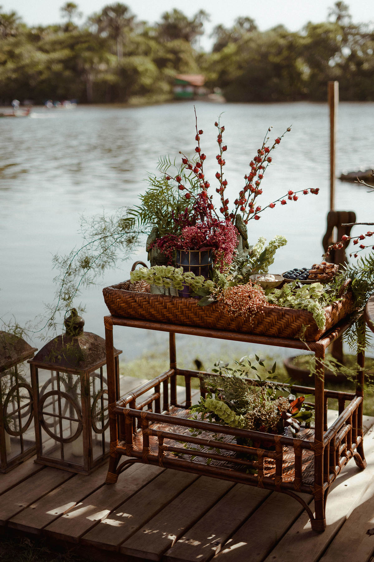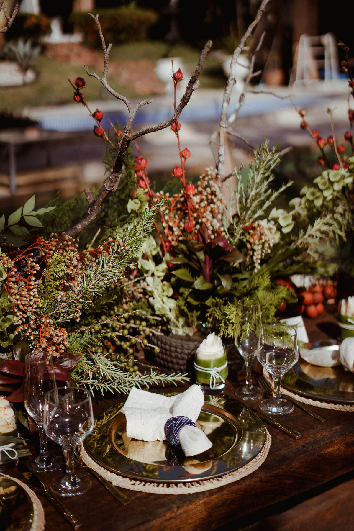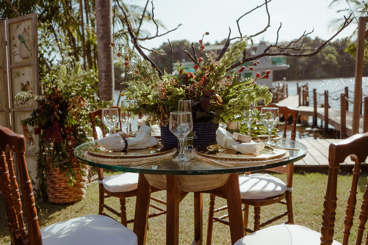 No mobiliário trouxemos o luxo de itens dourados, souplast, talheres, louças, linho para contrastar com a riqueza do material regional, fibras de buriti, madeira, ratam."(Luciana Coutinho- Decoradora)